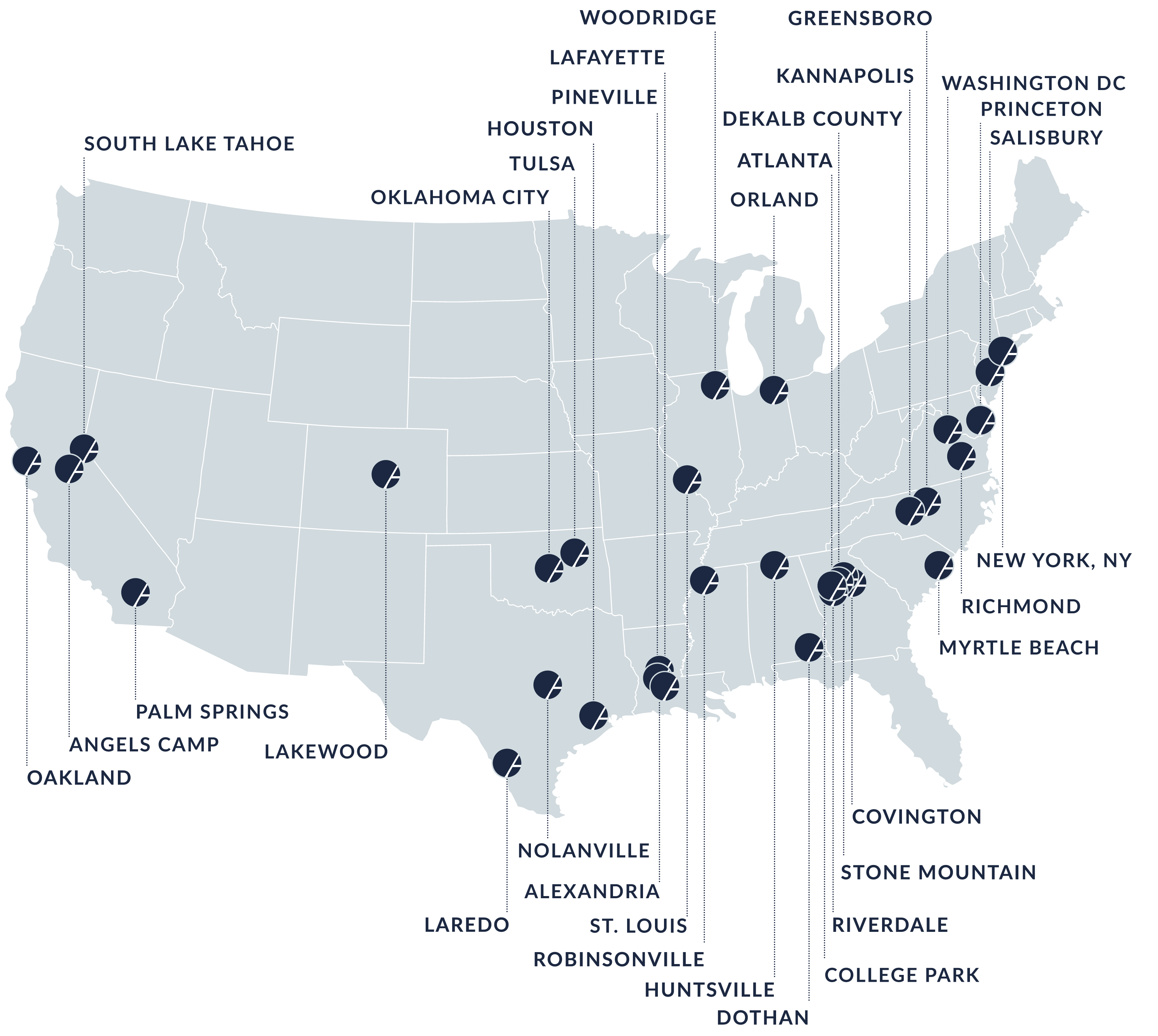 Investing in a Fund structure allows investors the ability to maximize their investment diversification. The Funds' investments are diversified in terms of geography, asset type, investment strategy, and operating partner. To date, Auerbach Funds have invested in over 62 transactions in 18 states. Further, Auerbach has on the ground relationships in over 51 US cities. Wealth preservation must begin with diversification, and we believe that this maxim is even more augmented in the Real Estate space.